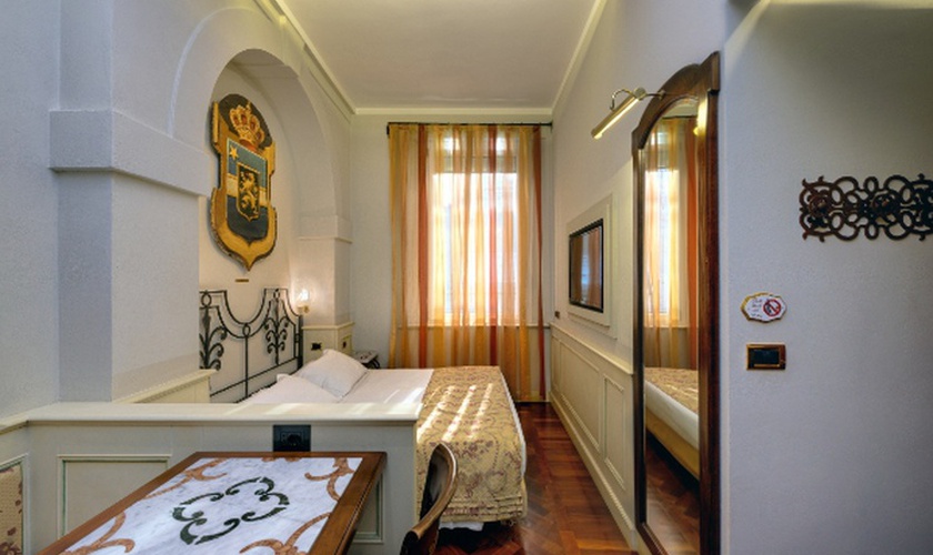 Die klassischen Doppelzimmer bieten kostenloses WLAN, Marmortisch, Klimaanlage, Safe, Fernseher mit kostenlosem Mediaset Premium-Programm, Minibar und Roomservice auf Anfrage, Bügeleisen und –brett, Kinderbett auf Anfrage, Marmorbad mit Badewanne oder Dusche, Haartrockner und Badeartikel. Buchen Sie das klassische Doppelzimmer auf der offiziellen Homepage des Commercianti Hotels.